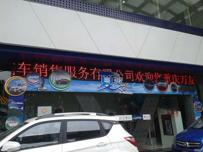 萬(wàn)友長(zhǎng)安4s店-大溪溝p10半戶(hù)外單紅led顯示屏