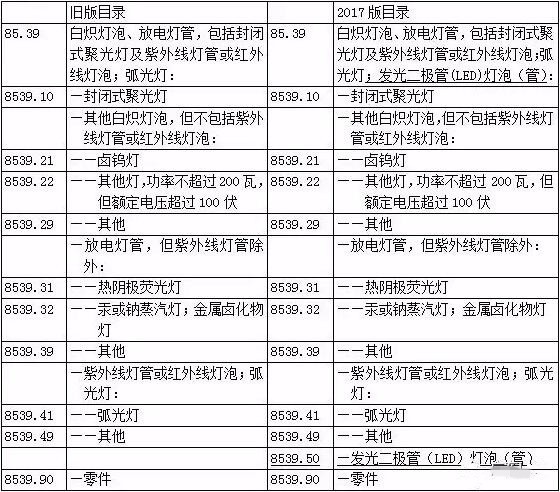 【政策】據(jù)海關(guān)總署公告2016年第48號(hào),《關(guān)于發(fā)布2017年版《協(xié)調(diào)制度》修訂目錄中文版的公告》的內(nèi)容,世界海關(guān)組織發(fā)布的2017年版《協(xié)調(diào)制度》修訂目錄,將于2017年1月1日生效。在新版的《協(xié)調(diào)制度》目錄中,第八十五章,注釋三十九,增加了新的子目錄,增列了發(fā)光二極管(LED)燈泡(管),其海關(guān)編碼為85395000。